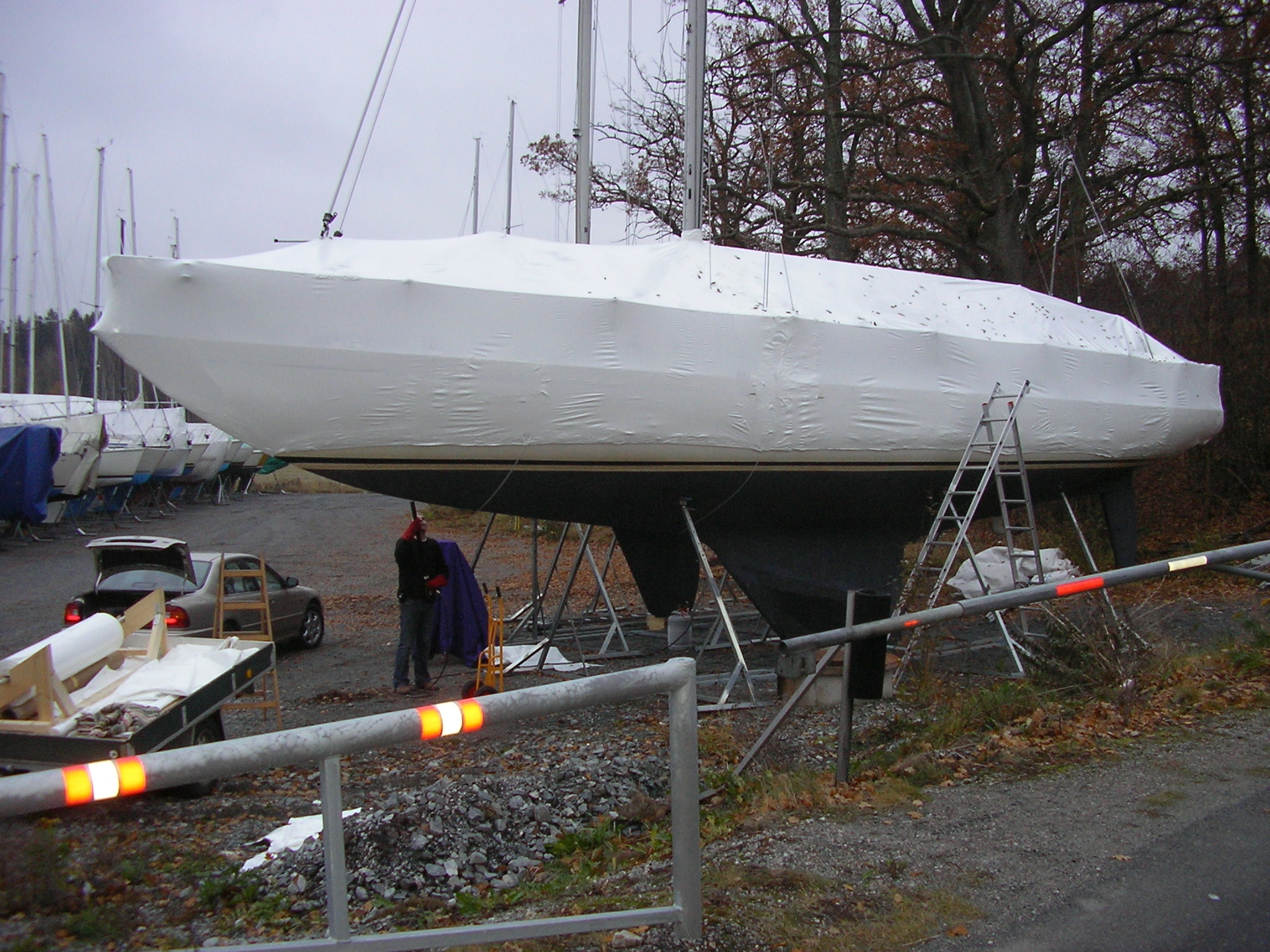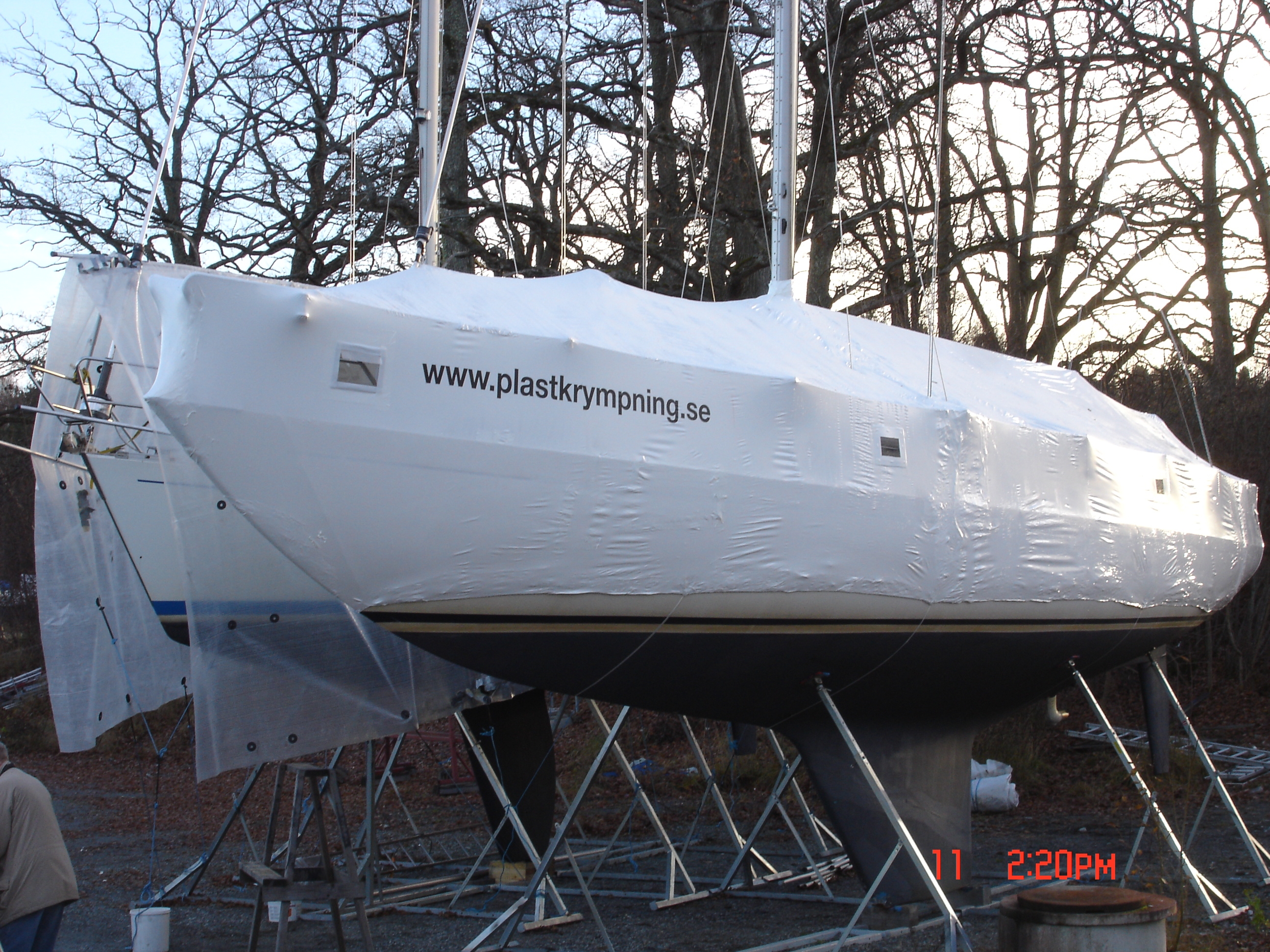 - En krympplastad båt tar mindre markyta i anspråk jämfört med konventionell täckställning och presenning