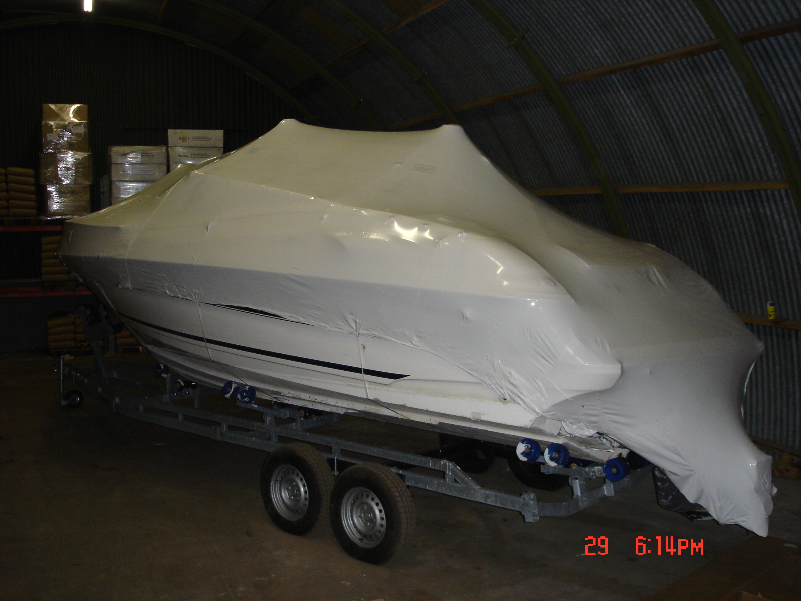 - I Sverige levereras ofta nya fritidsbåtar med ett transportskydd av krympplast